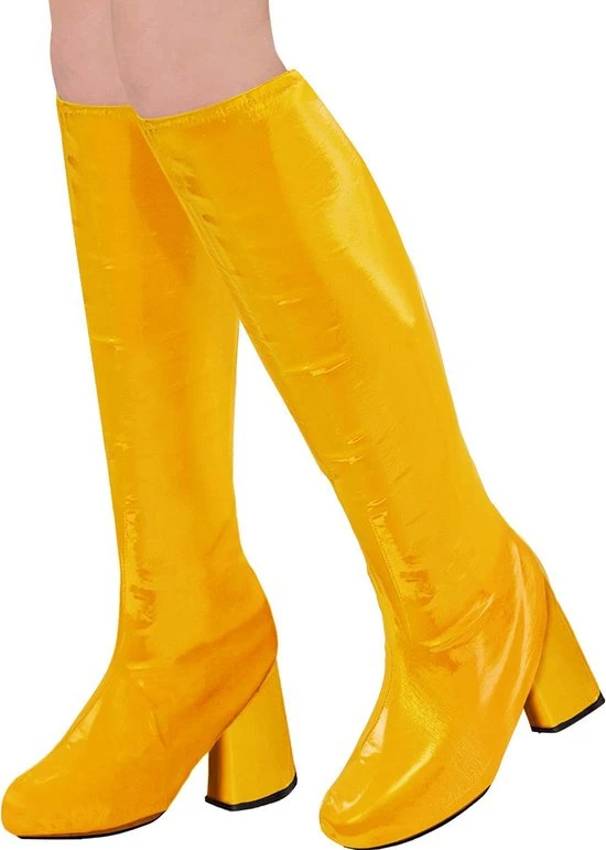 Deze overlaarzen voor volwassenen zijn okergeel van kleur. Ze komen tot onder de knieën en kunnen over de schoenen gedragen worden. Ze hebben een opening aan de achterkant voor uw eigen hakken. De overlaarzen zullen ideaal geschikt zijn voor het compleet maken van een disco outfit in kleur!